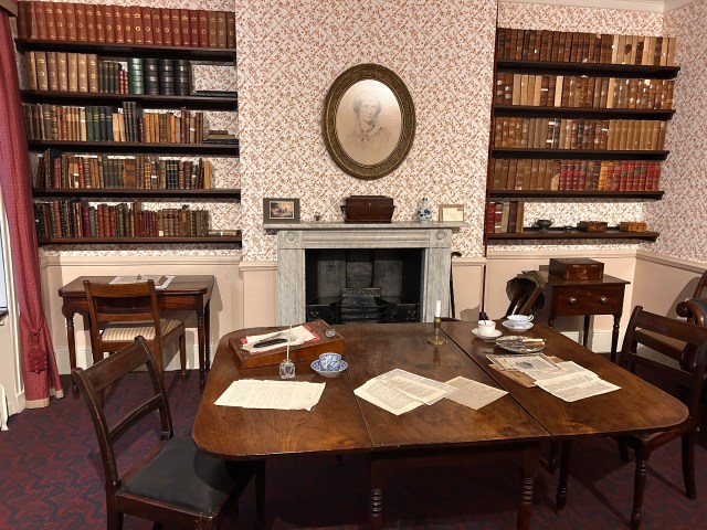 The dining room was smaller than I expected. The mahogany table bore its quiet scars; ink stains and burn marks softened by time. Shelves of worn spines lined the walls, a parliament of books watching from their place above the hearth. Here, the sisters walked in circles reading aloud their drafts, trading pages, arguing, laughing, rewriting into the night. I imagined the rhythm of their footsteps, the heartbeat of creative sisterhood. Confidence multiplied by companionship.